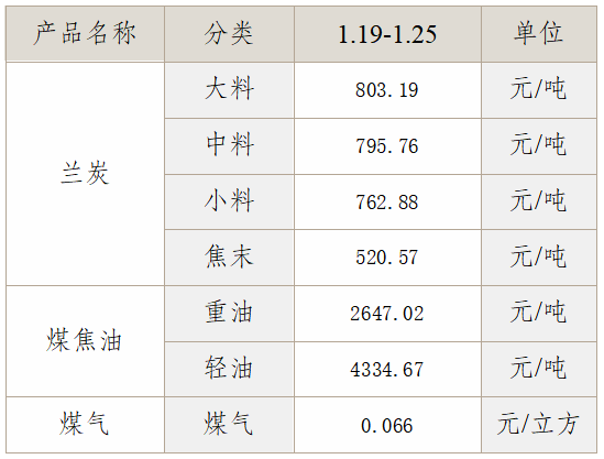兰炭及其附属产品平均价格(2026.1.19-1.25)