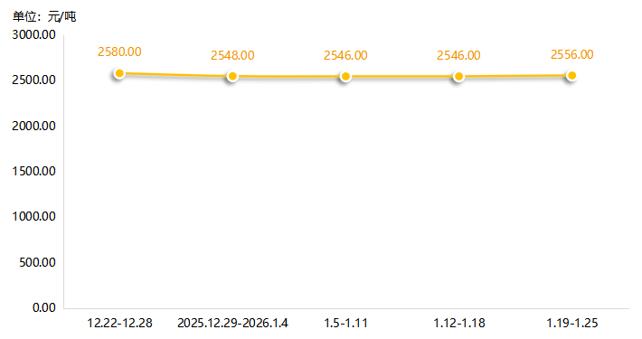 本期,电石市场均价为2556.00元/吨,环比略涨0.39%。分析来看,一方面,原料兰炭价格走弱,直接削弱电石成本支撑力度;另一方面,下游PVC等行业行情低迷,对高价电石的接受度有限,且部分区域下游开工已出现回落,需求难以持续放量。而从产业链影响来看,电石企业在自身成本压力与下游产品疲软的情况下,对原料兰炭的采购普遍持谨慎态度,并存在较强的压价意愿,导致兰炭需求端难以获得有力提振,加剧市场的弱势运行。综合来看,当前电石市场在“供应扰动”与“需求不振、成本下移”的博弈中高位盘整,而这种格局也反过来抑制了兰炭市场的上行空间,形成了上下游之间的弱势联动。