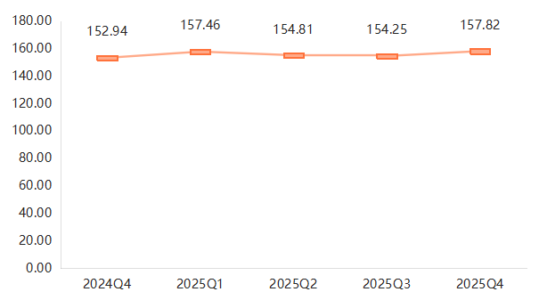 2025年武城暖通空调产业创新发展指数波动上涨,一季度指数为157.46点,二季度小幅下降1.68%至154.81点,三季度进一步降至154.25点,而四季度回升至157.82点,同比增长3.19%,表明产业创新发展水平持续提升。