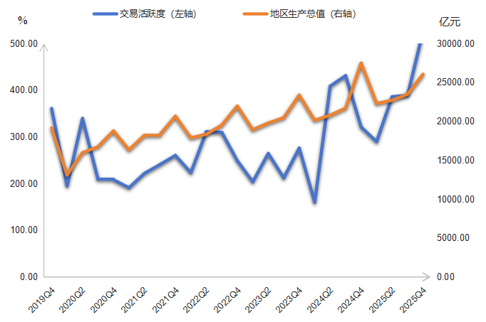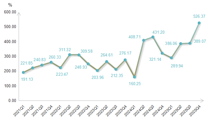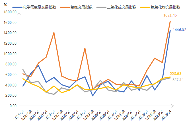 2025年四季度,浙江省排污权交易活跃度指数收于526.37点,环比上升35.29%,同比上升63.91%。