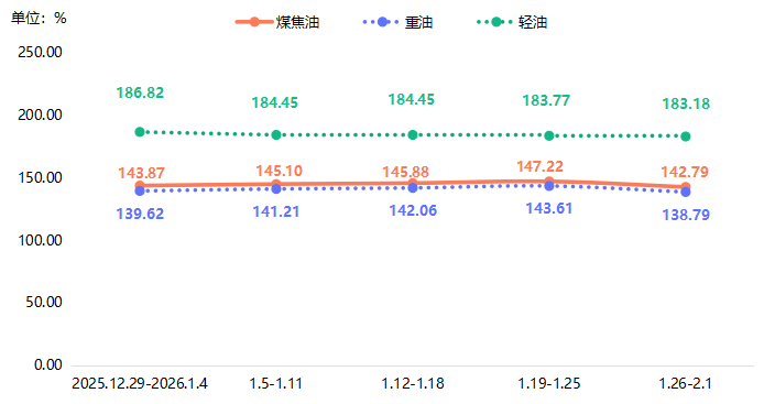 本期,煤焦油价格指数收报于142.79点,环比下降3.01%。分析来看,煤焦油市场价格下降,压力主要来自下游需求的收缩。具体来看,一方面,市场对煤焦油的采购积极性减弱,导致市场整体需求收窄;另一方面,在买方议价能力增强的背景下,下游压价情绪不减,市场交易重心逐步下移,形成价格稳中趋降的运行局面。