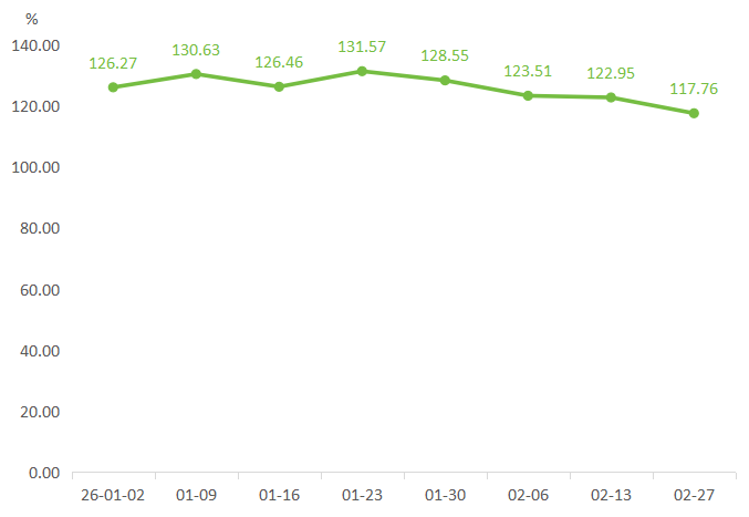 春节期间天气总体晴好、气温偏高,为本地蔬菜生长创造了有利条件。本地叶菜生长周期缩短、长势加快,近期集中大量上市,市场供应充裕,带动价格快速下行。其中,茴香、香菜等节前热门品种价格显著回落;菠菜、油麦菜、小白菜、芹菜等常见叶菜零售价甚至普遍跌破1.00元/斤,创阶段性新低。