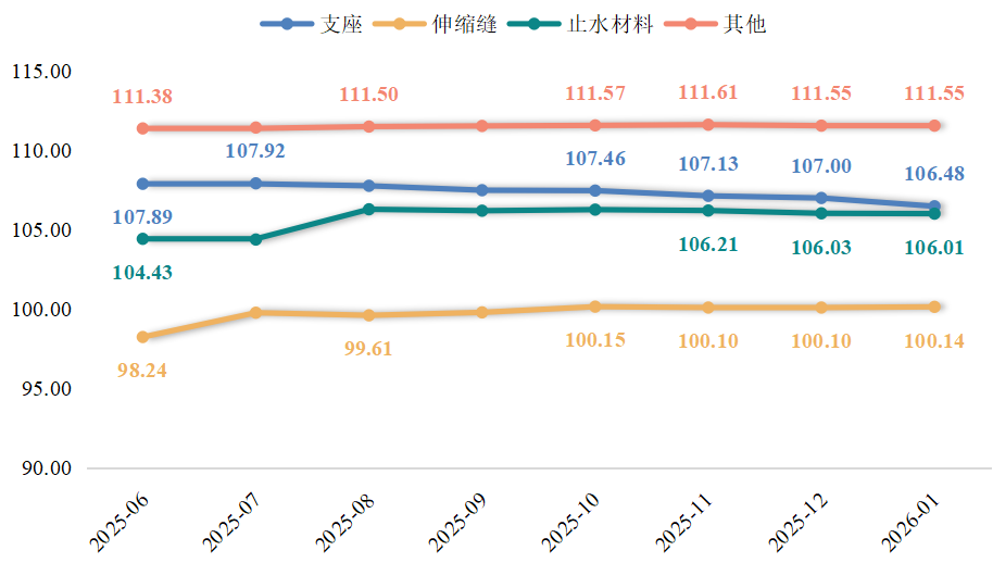 伸缩缝类涨0.04点,是唯一上涨的品类;