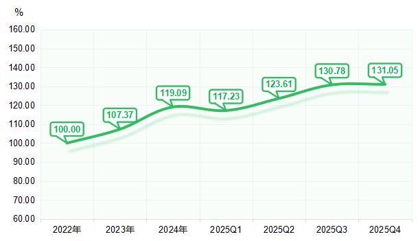 2025年,通辽黄玉米品牌培育指数持续攀升,到四季度收于131.05点。