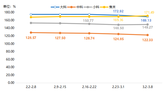上涨:小料、焦末、重油、轻油价格指数均有上涨,其中煤焦油、重油涨幅显著。
