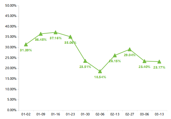 同比来看,本期蔬菜价格指数相较去年同期仍处于较高水平,本期同比升幅为23.17%。