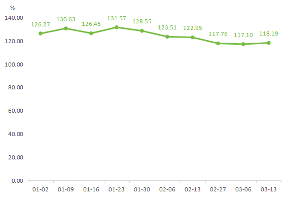 据“南大堡市场蔬果指数”信息系统监测,本期蔬菜(周定基)价格指数窄幅波动运行,收于118.19点,环比略涨0.93%。