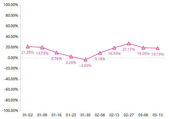 同比来看,本期水果价格指数相较去年同期处于较高水平,本期同比升幅为18.19%。