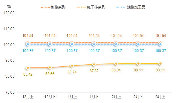 数据显示,3月上半月,辣椒市场虽处于传统淡季向旺季的过渡期,但价格指数保持稳定,供需博弈平衡。