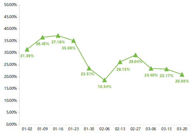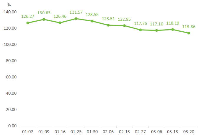 蔬菜价格指数:113.86点,环比跌3.66%,同比涨20.88%。