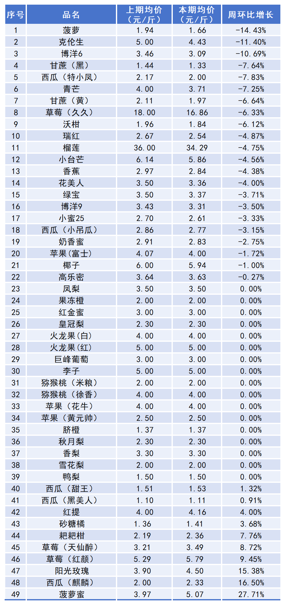 本期水果价格涨跌表