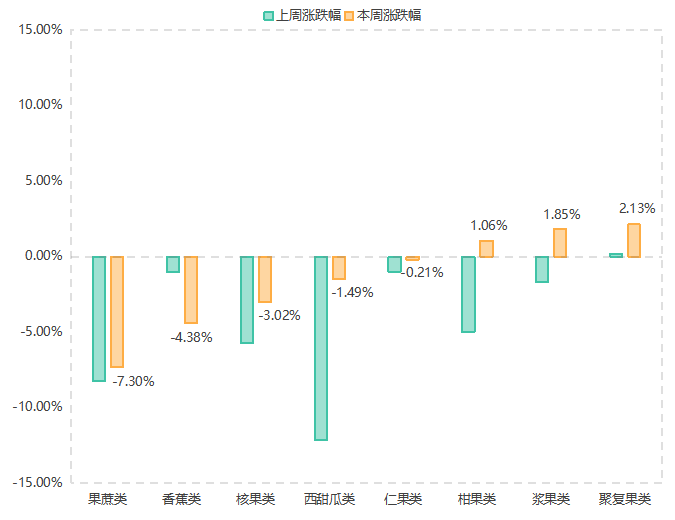 聚复果类(2.13%)水果价格指数本期升幅扩大至2.13%