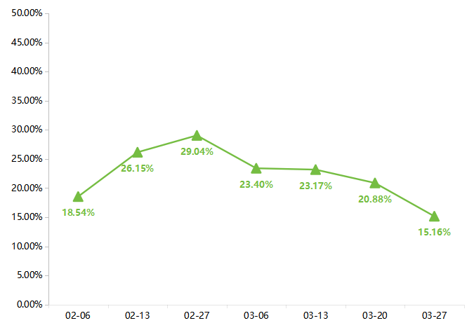 这一变化反映出随着天气逐渐转暖、气温持续升高,北方大棚蔬菜生长速度加快,尤其是本地叶菜类蔬菜供应量大幅增加,市场整体供应宽松,出现供大于求的局面。