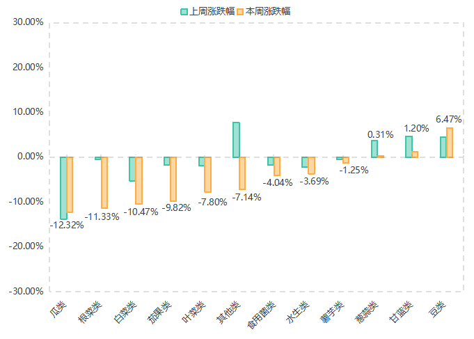 根菜类、白菜类、茄果类、叶菜类、食用菌类、水生类和薯芋类蔬菜价格指数降幅均有不同程度的扩大