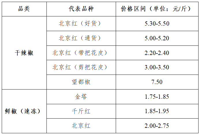 部分品种辣椒价格