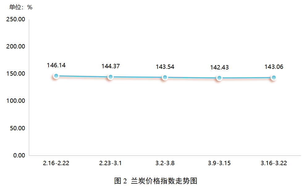 本期,兰炭价格指数收于143.06点,环比上升0.44%。