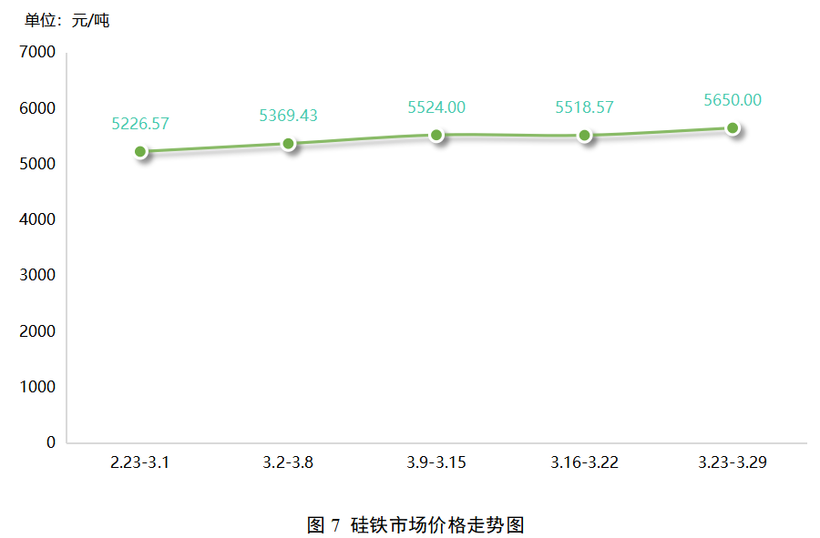 本期,硅铁市场价格为5650.00元/吨,环比上升2.38%。分析看,近期硅铁市场稳中偏强运行,其价格上涨主要受到成本支撑增强、主产区库存持续去化以及期货情绪带动等因素推动。当前原料端兰炭价格上行为硅铁提供成本支撑,而硅铁企业排单生产、社会货源偏紧进一步稳固了价格底部。从产业链影响看,硅铁行情上涨在一定程度上增强了其对原料兰炭的采购需求,有利于兰炭价格的传导与稳定。然而,由于硅铁供应潜力逐步释放、下游对高价接受度有限,其价格上涨空间仍受约束,将相应限制对兰炭需求的进一步拉动。