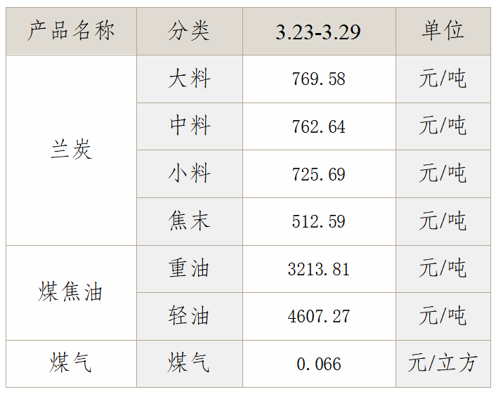 兰炭及其附属产品平均价格(2026.3.23-3.29)