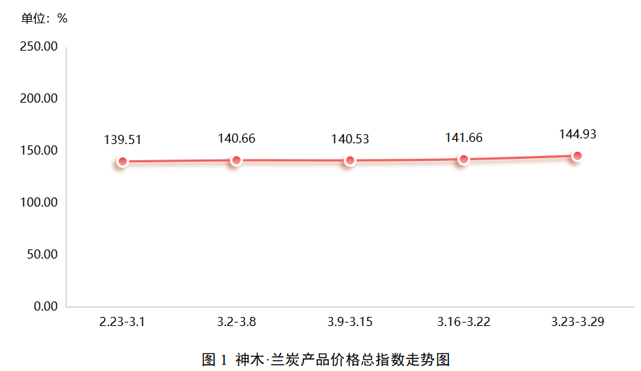 本期(2026.3.23-3.29,下同),神木兰炭市场偏强运行。据“神木·中国兰炭产业指数”信息系统监测,本期兰炭产品价格总指数收于144.93点,环比上涨2.31%。细分产品中,大中小料、焦末、重油、轻油价格指数均有上涨,煤气价格指数持平。