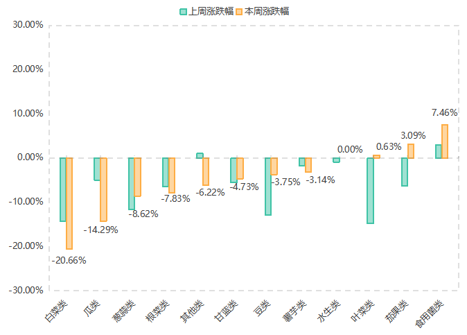 本期监测的12类蔬菜价格指数呈现“三升一平八降”态势。