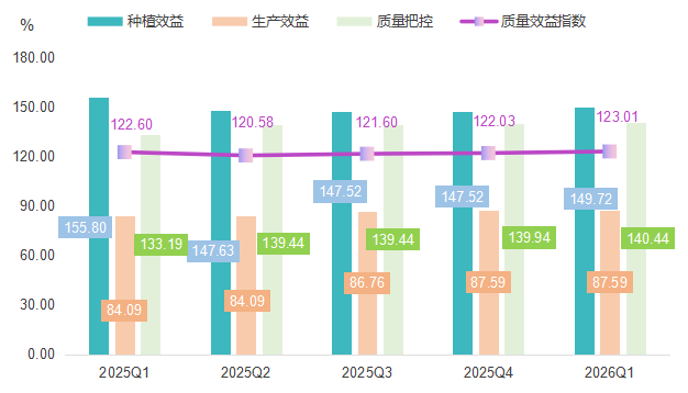 质量效益指数:123.01点,稳中有升,优质优价凸显。