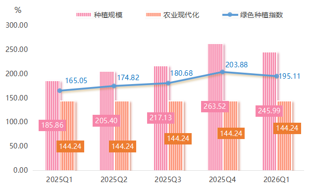绿色种植指数:195.11点,高位回调,仍处历史高位。