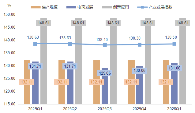 具体来看,品牌推广指数是拉动总指数上涨的关键,指数收于169.17点,较2025年四季度上涨22.78%。2月,徐闻菠萝成功亮相法国国际农业博览会,以高规格平台实现品牌出海展示,有效提升了徐闻菠萝品牌的国际知名度与影响力。3月,徐闻出台采购商住宿费用减免等务实惠企政策,为品牌市场拓展提供了坚实的政策支撑。