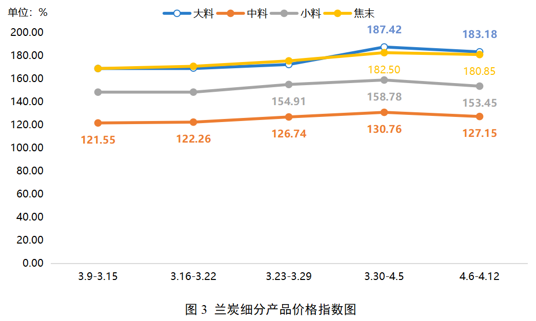 本期兰炭市场整体呈现稳中偏弱态势。具体来看,上游原料煤市场运行平稳,对兰炭成本形成支撑;但兰炭企业供应温和增加,而下游采购节奏谨慎,导致市场供需维持弱平衡,一定程度上对兰炭价格形成拖累。综合来看,市场多空因素交织,短期价格预计以稳为主。细分来看,各产品价格指数均有下降,大中小料、焦末价格指数降幅分别为2.26%、2.77%、3.36%和0.90%。