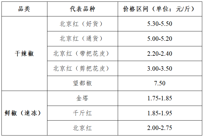 辣椒加工品价格指数:保持稳定