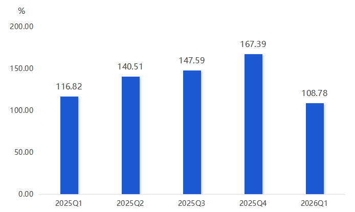 2026年一季度,复合材料产业发展指数收报于108.78点,环比下降35.01%,同比下降6.88%,呈季节性回落走势。