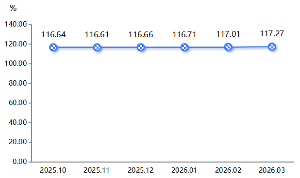 2026年一季度,在成本端压力急剧上升的背景下,复合材料产品价格指数保持温和跟涨态势,显示出一定的价格粘性。截至3月,产品价格指数收报于117.27点,较2025年12月上涨0.53%,季度内涨幅逐月小幅抬升。