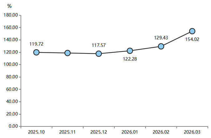 2026年一季度,美国以色列和伊朗的战争,短期推动国际油价快速上涨,影响复合材料原料价格指数快速、大幅上涨。截至3月,原料价格指数收报于154.02点,较2025年12月上涨31.01%,季度内呈逐月加速上行态势。
