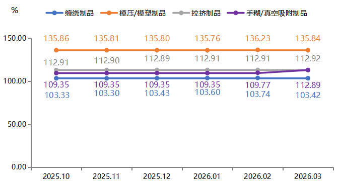整体来看,尽管产品价格指数实现一季度内“三连涨”,但0.53%的涨幅,远低于原料成本端31.01%的飙升幅度,意味着下游制品企业正面临严峻的成本传导压力。