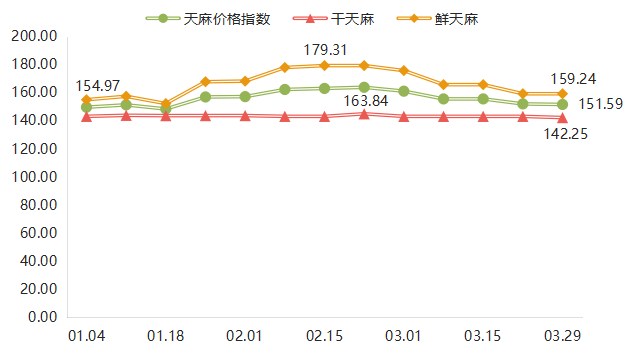 干天麻价格指数平稳偏弱、季度微跌0.61%