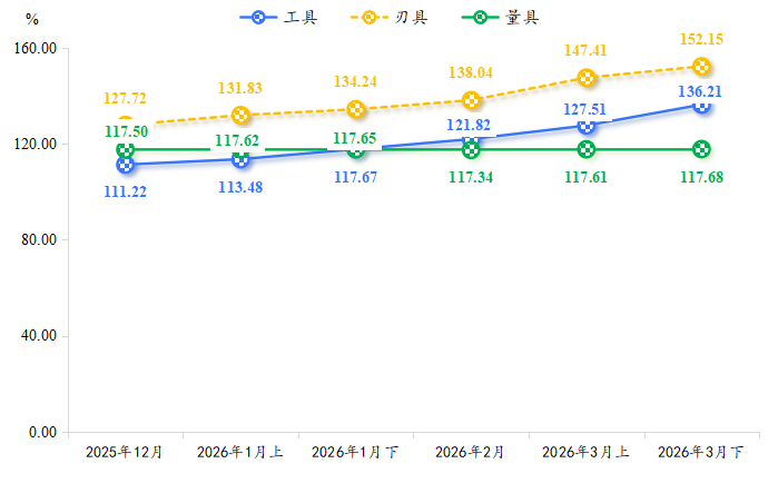 2026年一季度,工量刃具行业景气指数整体呈现“先抑后扬,震荡回升”的运行态势。