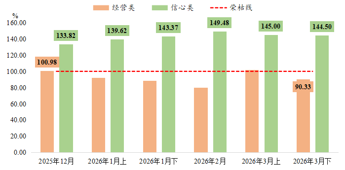 经营类景气指数在一季度表现疲软,走势上呈现“持续承压,短暂修复”的运行特征,多数时间运行于荣枯线下方,反映出企业经营层面仍面临较大压力。