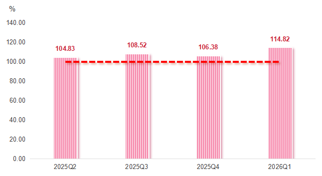 融合发展具备拓展空间。创新融合指数为113.73点,较2025年四季度小幅下降1.16%,“农业+旅游”“农业+加工”等新业态仍有较大发展潜力,未来可通过业态融合进一步推动产业增值。
