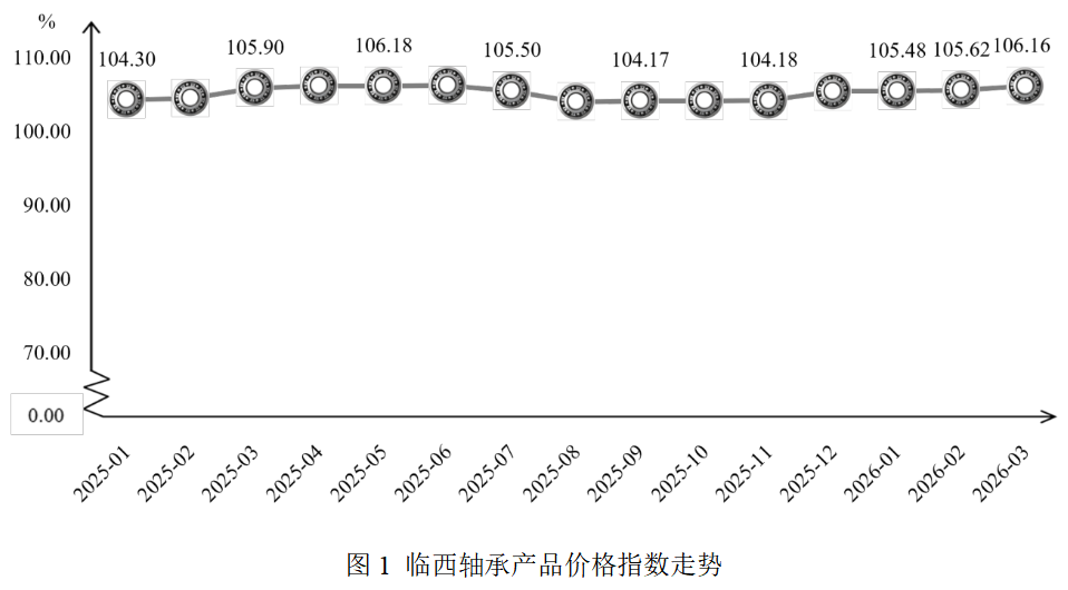 轴承产品价格指数逐月上行,3月达106.16点,较2025年末上涨0.68%,呈现“供需两旺”态势。